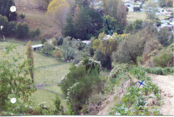 X marks the spot from where Poynter shot at least 5 goats and the arrow points to my residence at the time.