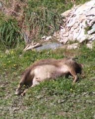 Poynter didn’t check if the goats he’d shot were in fact dead and not suffering a slow, painful death nor did he dispose of the carcasses as is required by law. And he let any baby goats starve to death. He has since denied under oath shooting the above goats saying that he only shoots on his own land. All the pictured dead goats were on Carr land. (3)