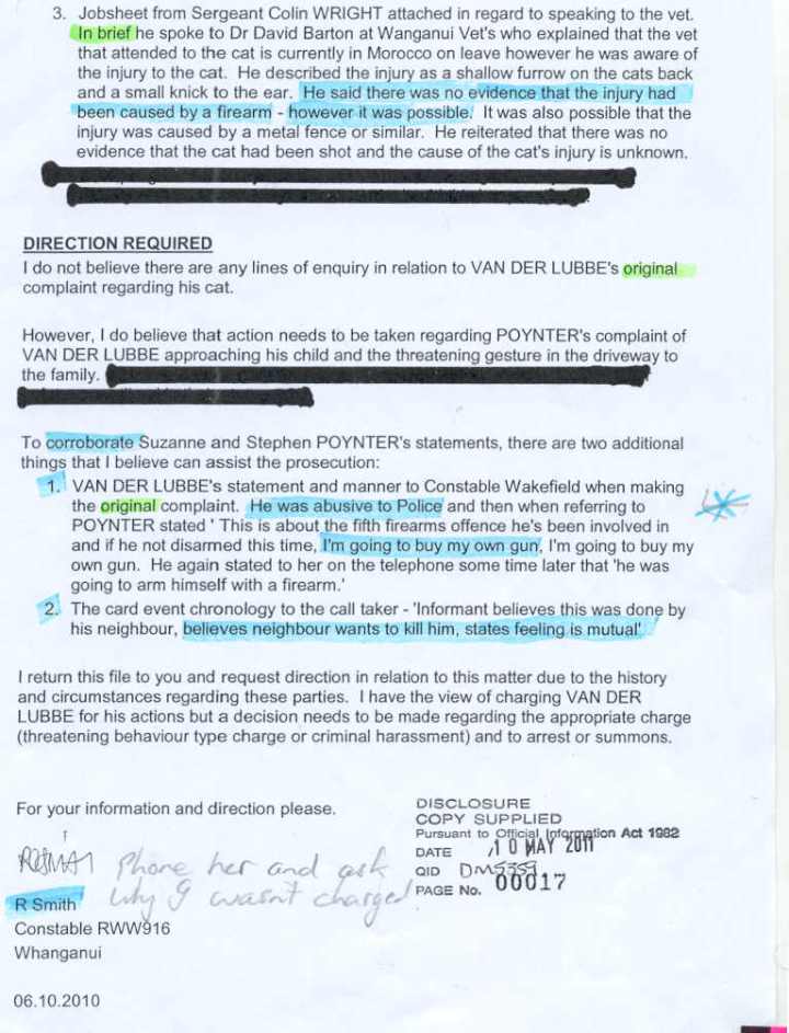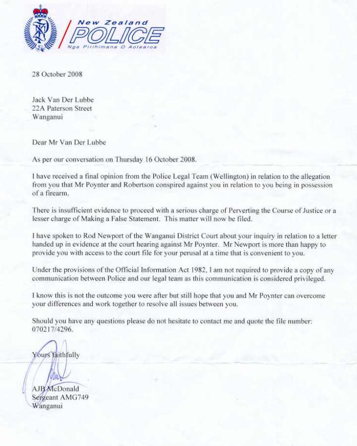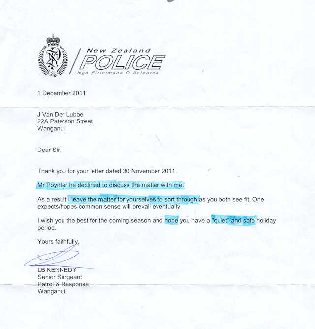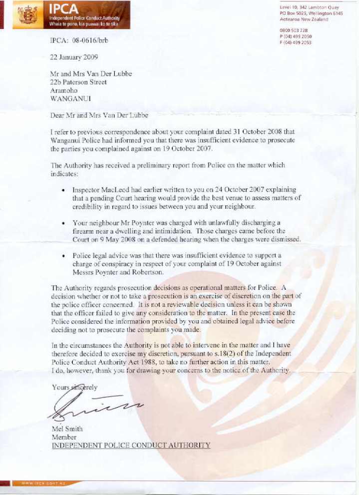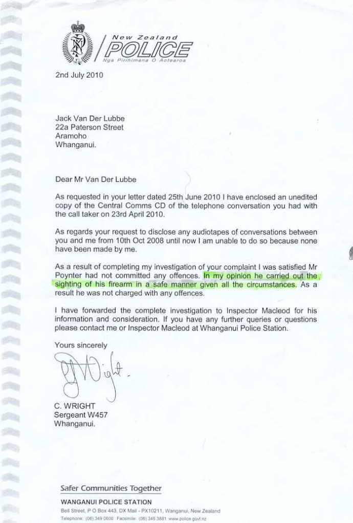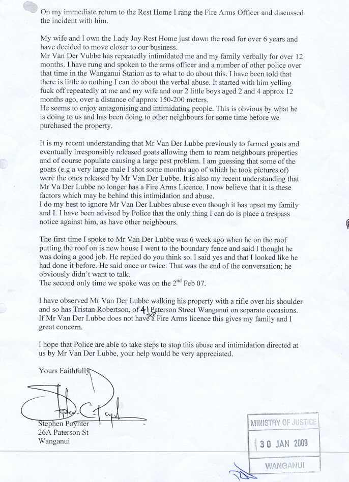 Untold phone calls followed up by untold letters to the Police about Stephen Poynter’s high-powered firearms misuse and other criminal offences and provocations fell on deaf ears and blind eyes. The conclusion must be that the NZ Police are knowingly and willingly aiding and abetting Stephen Poynter’s ongoing criminal offending.