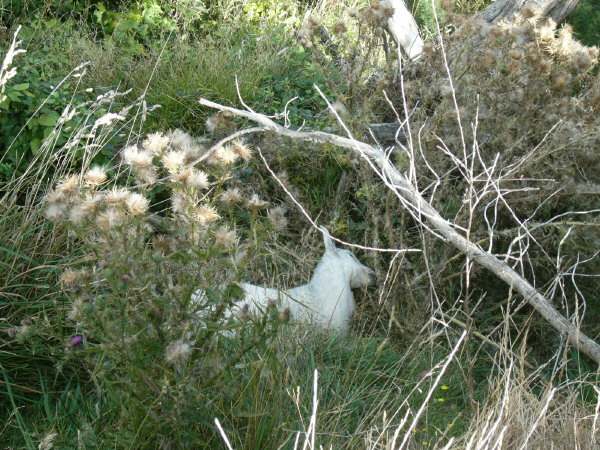 What a fucking wanker, the cops have revoked his firearms licence at last, so when he found a dead deer hung up in a fence near the Lady Joy he dragged it over to where I was certain to see it to make me think that he’s still “retiring” harmless pets.