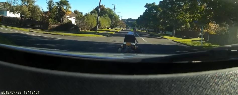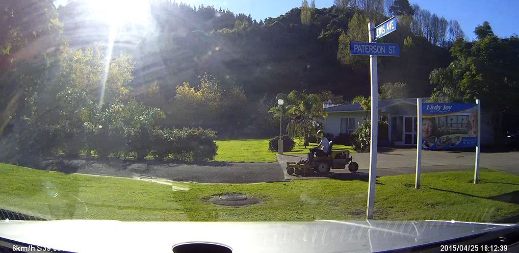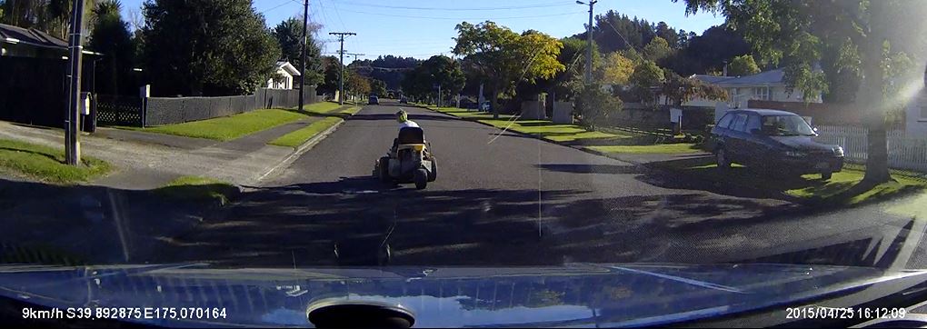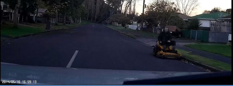 Also nice shots of me on the lawn mower, tells me exactly what type of a lunatic you are. Waiting in your driveway till I left and then following me to my place of work [just down the street] with your rear view mirror camera. I noticed you took out all the pictures where I was useing hand signals and when I was giving you the whole street to pass me, only useing the parts where I’m in the midle of the road avoiding the manholes. Also so people know and a refresher for you that ride on lawn mower goes a maximum of 10kmh. And just so you know I’m no criminal I am a highly respected wanganui st Georges and now collegiate school senior student who was awarded service colours for acts of service in the community, don’t believe me I’ll send you a picture of the fabric badge. Not that you’ll pug it up or anything.