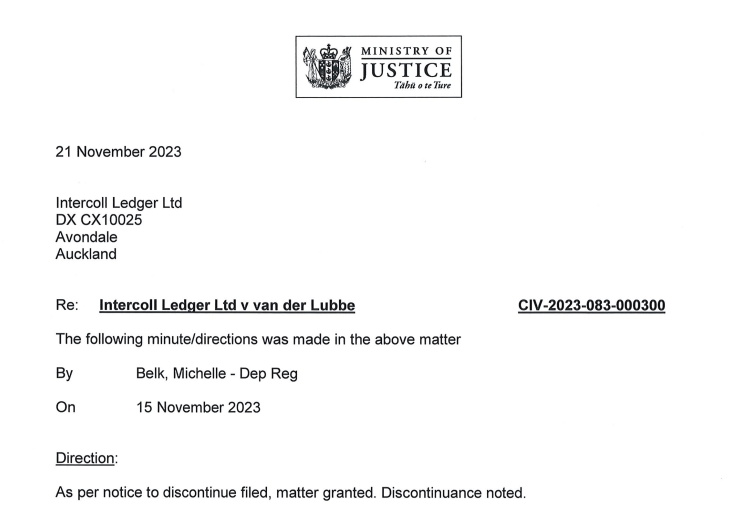 So the carpet baggers fell at the first judicial hurdle which proves that they were attempting to extort money from me, had no legal reason to trespass, and also that the NZ Police (Sergeant Kevin J Smith) was/were donkey deep in the conspiracy.