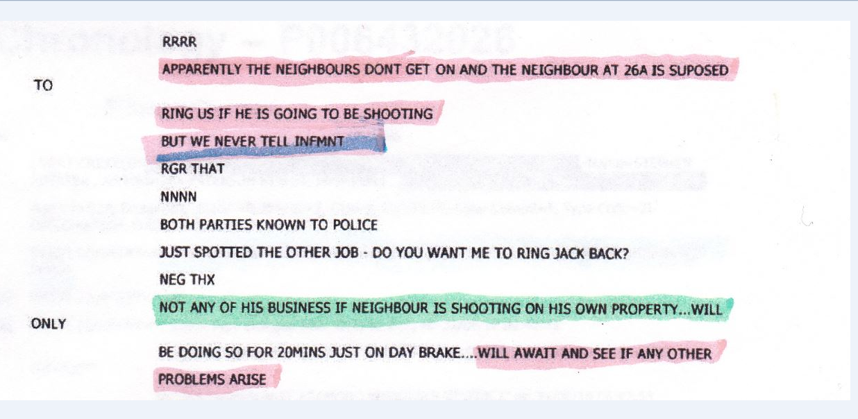 Wright…………”If he’s shooting on his land and he phones us to say he’s doing that…………….